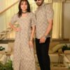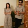 Be the first to review “Couple Matching Beige Cotton Anarkali Midi Dress and Shirt Set ? Swirl Block Print” Cancel reply