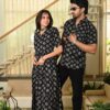 Couple Matching Black Printed Cotton Anarkali Midi Dress & Shirt Set ? Summer Casual Wear