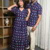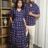 Couple Matching Navy Blue Cotton Printed Anarkali Midi Dress & Shirt Set ? Casual & Festive Wear