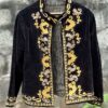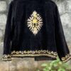 Womens Black Velvet Embroidered Jacket with Floral Design