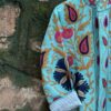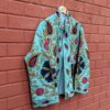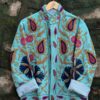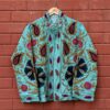 Womens Teal Blue Velvet Embroidered Jacket with Floral Design